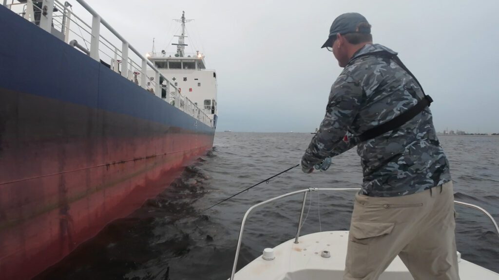 Fly fishing on Tokyo's saltwater beast from charter boat driven by experienced captain while enjoying rare night view of Tokyo Bay from sea.