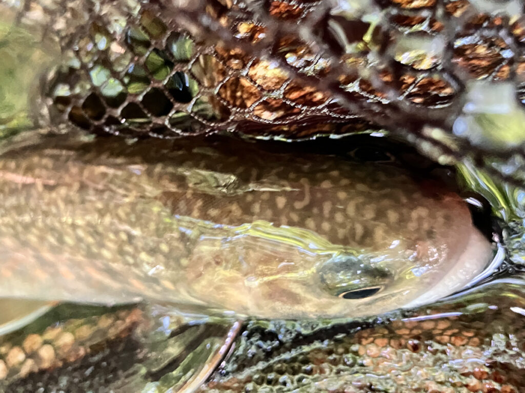 さらに大きな規模の湖に育成に十分な源流がある場合は、海の代わりに湖を利用する湖沼型のアメマスが居着きます。内水面のアメマス・エゾイワナには金色を帯びているものがいますが、これは日焼けをしている状態で、浅瀬の餌を狙って回遊している個体が多いかどうかの判断になります。