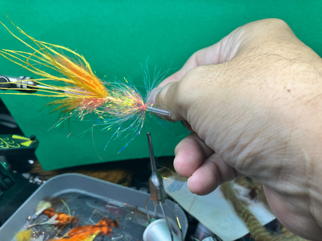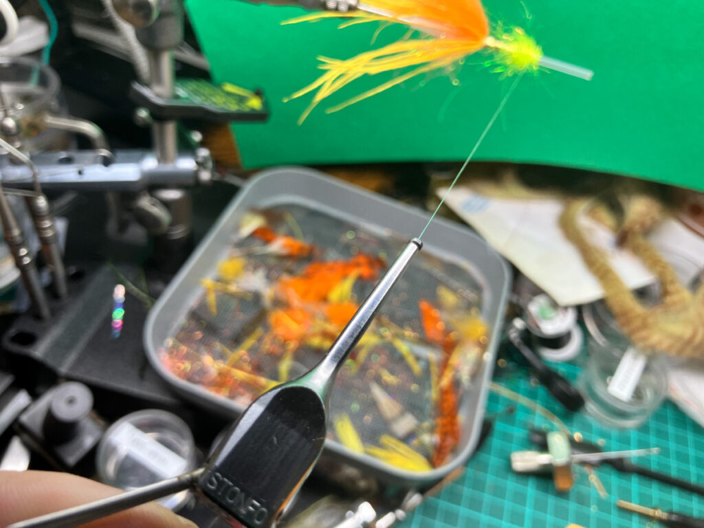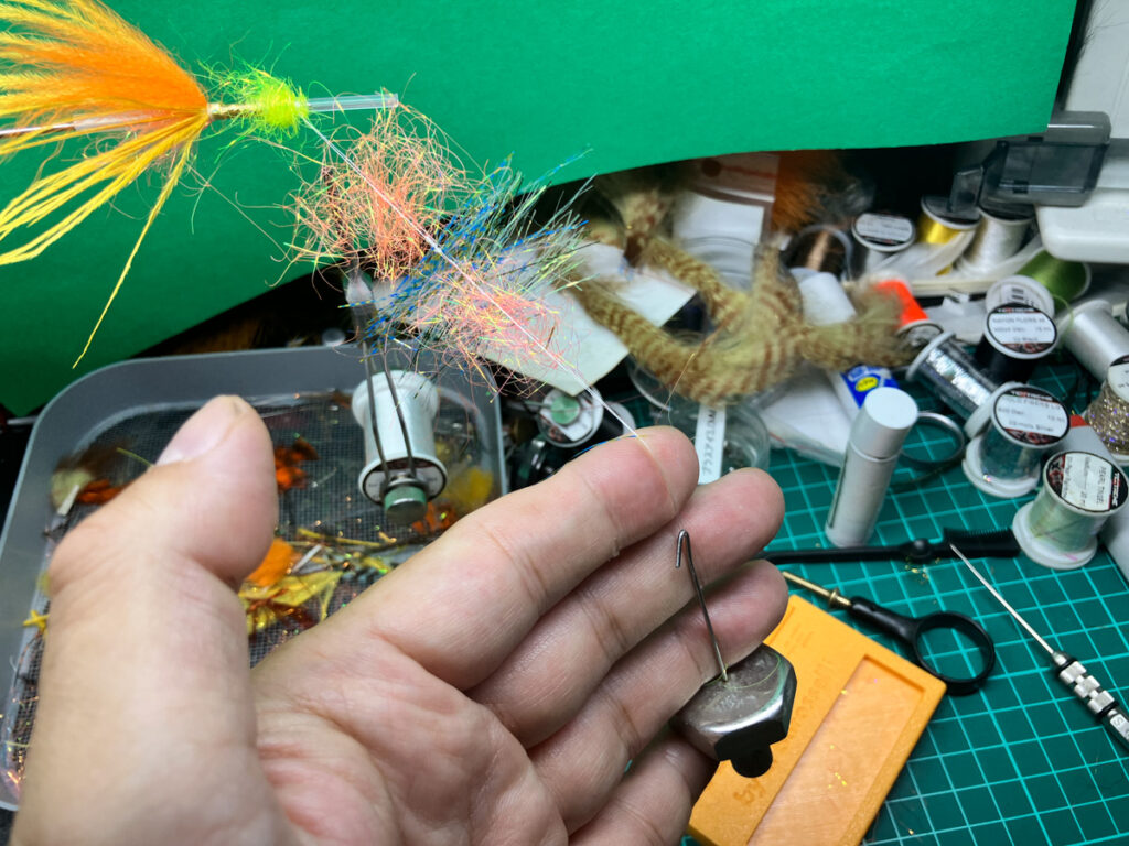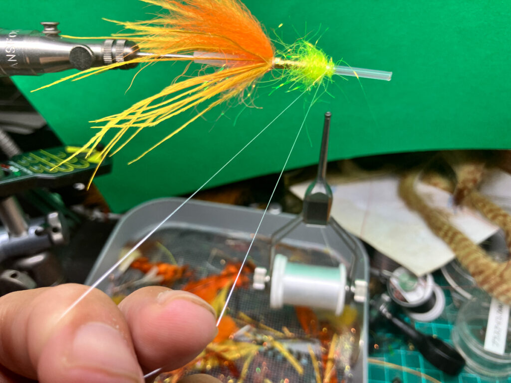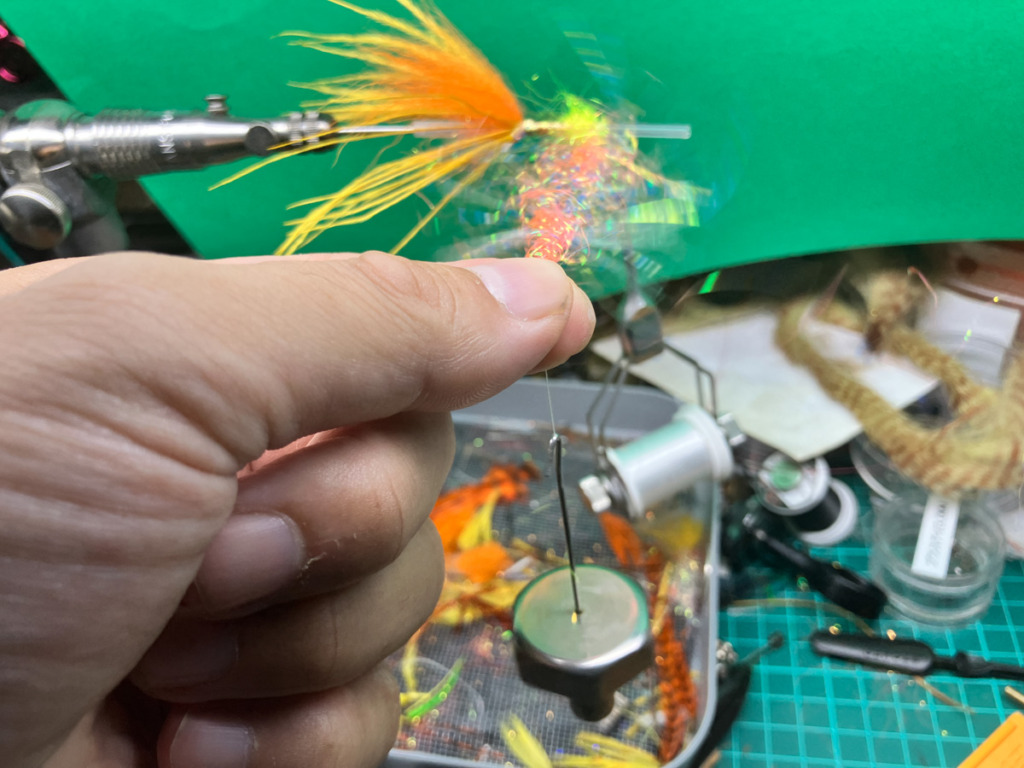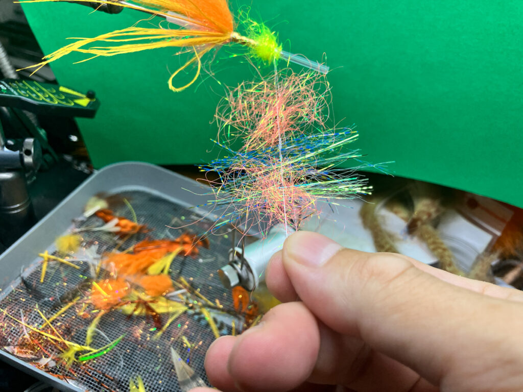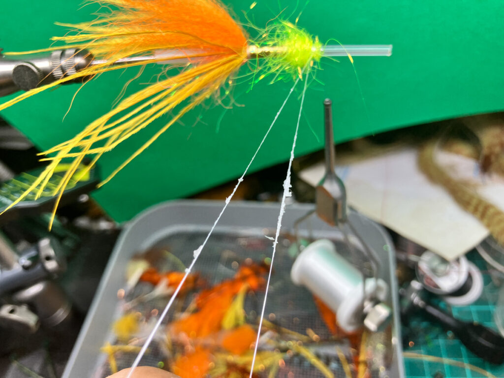 ダビングスピナーをループの先端に引っ掛けてループを閉じます。