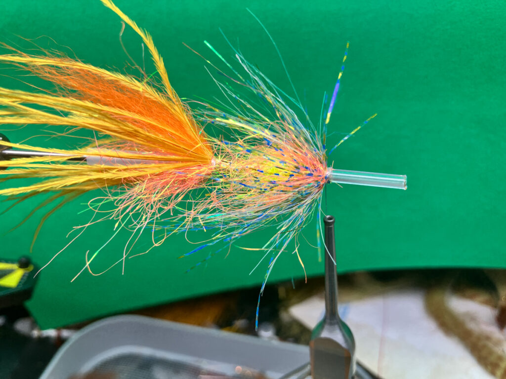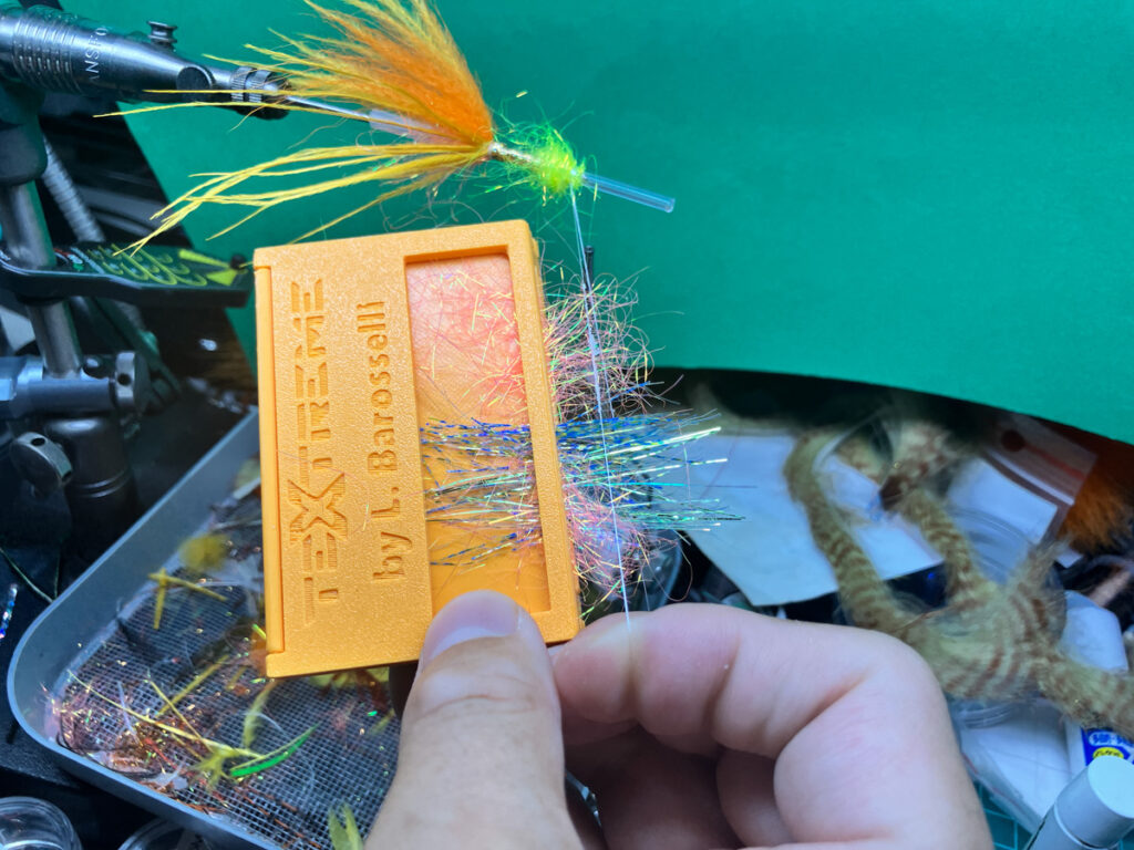 ウェットやニンフ、ストリーマーのボディで水押しを良くする為のボリュームを出したい時などにも便利なテクニックが、好みのマテリアルを合成=コンポジットして作る、コンポジットハックルです。コンポジットループとも呼ばれて、シャンクフライやチューブフライでは多用されます。