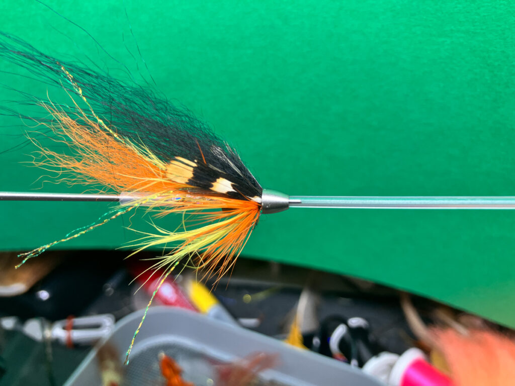 北欧ではアトランティックサーモンやシートラウト、PNWではスティールヘッドや遡上型トラウトを狙うのにポピュラーなチューブフライ「テンプルドッグ」。スウェーデンのミカエル・フローディンとハーカン・ノーリングが同時期に考えたと言われていますが、水流の中での動きの良さと水馴染みの速さを両立させるため、最小限のヘアマテリアルでニシンサイズの魚からエビまで表現できる、カラーを変えることでいろんなベイトのイミテーションとして機能する、まさにチューブフライのお手本のようなパターンになっています。
