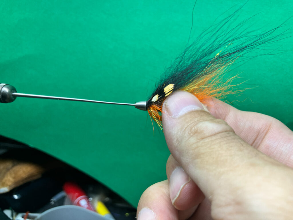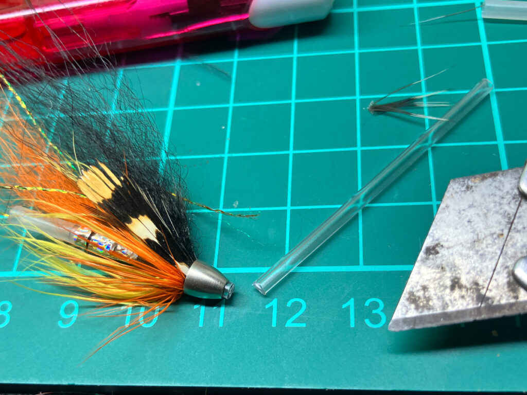 素早くチューブフライツールに差し込んで穴が閉じないようにして完成です。