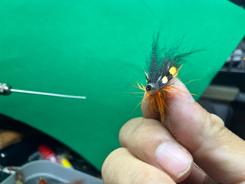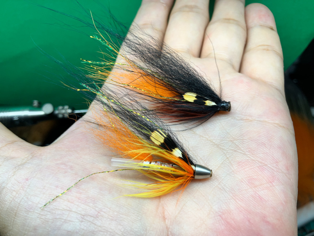 小魚や甲殻類を捕食する・記憶をもつ魚であれば遡上魚でなくても、湖のインレットやスモールマウスバスまでアピールする要素を持っています。同時にジャングルコック・アイをつけることで幅広くアピールするストリーマーとなっています。