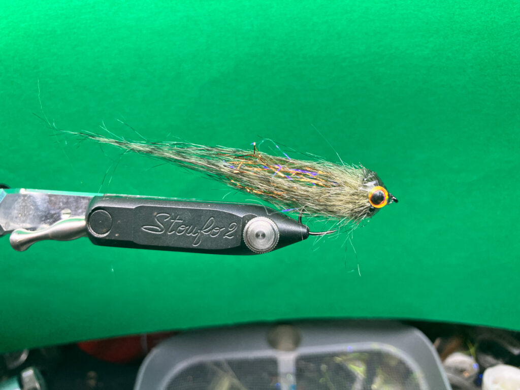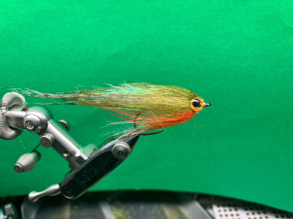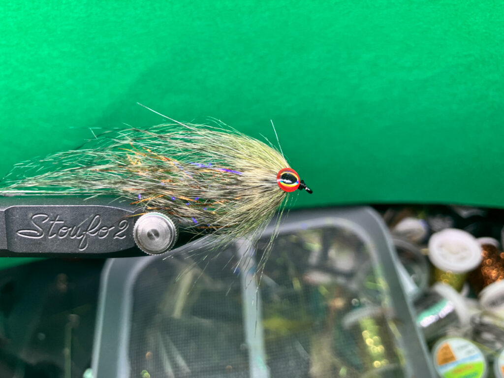 「HDSクラフトフィッシュ」はシルエットをはっきり出したり水押しを強めるようにクラフトファーが厚めに巻かれていてバスやシーバスに効果を発揮するストリーマーですが、よりナーバスな魚を相手にするデイゲームの場面で水を吸うクラフトファーの量を減らして静音化しつつ透過性を高めたフライとなります。