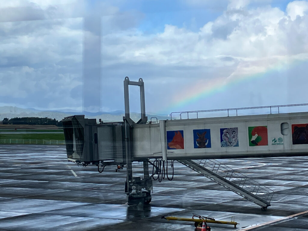 午前中は旭川市内で手短な用事があるので朝イチのJALで着いた旭川空港。体調は万全では無いですが、美しい虹のお出迎えに搭乗客もみんな笑顔!