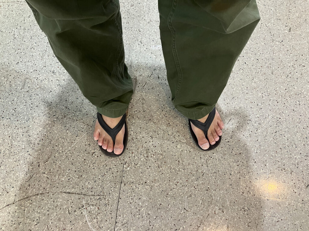 しかし 風邪で頭が回ってないせいでしょう、日常履き物の「漁サン」のまま来てしまったことに途中で気づきました・・。小笠原で初めて買って履いて以来、愛用してきた漁サンもバリエーションが増えて、私のは「ハワイアンBrown」! これから北海道の北端へ行くというのに、季節感無いどころかウインタータイヤの世界にサマータイヤで行くようなもんか?まあ大丈夫だろう。
