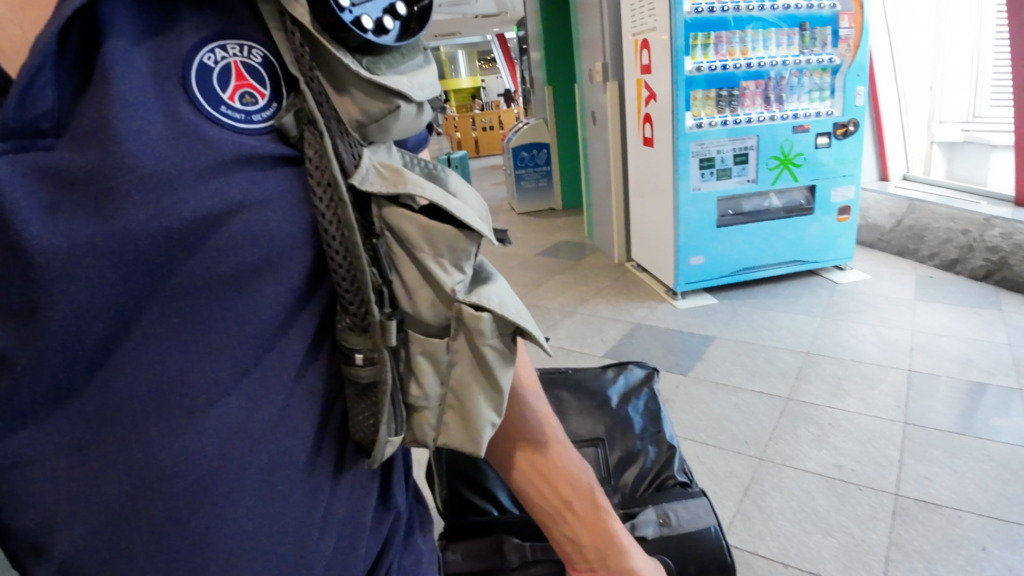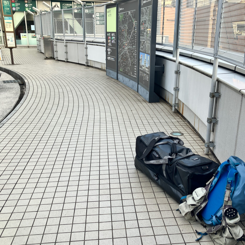 防水バックパックでサイドにポケットまたはロッドチューブを固定することができるタイプのもの。30L近く入るタイプのものであれば、キャリーケースに入れると嵩張る寝袋やULソロテント・着替えや、チェックインできないモバイルバッテリーやノートPCなども入れていくことができます。